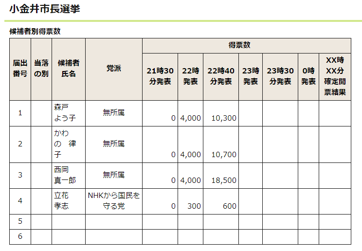 RT @nyafkamotto: 【速報】小金井市長選挙、立憲民主党と生活者ネットが支援する現職の西岡真一郎さんが、自民・公明・維新推薦の河野氏らを破り当選確実 #小金井市長選 #東京18区 pic.twitter.com/b4YBIsosHo